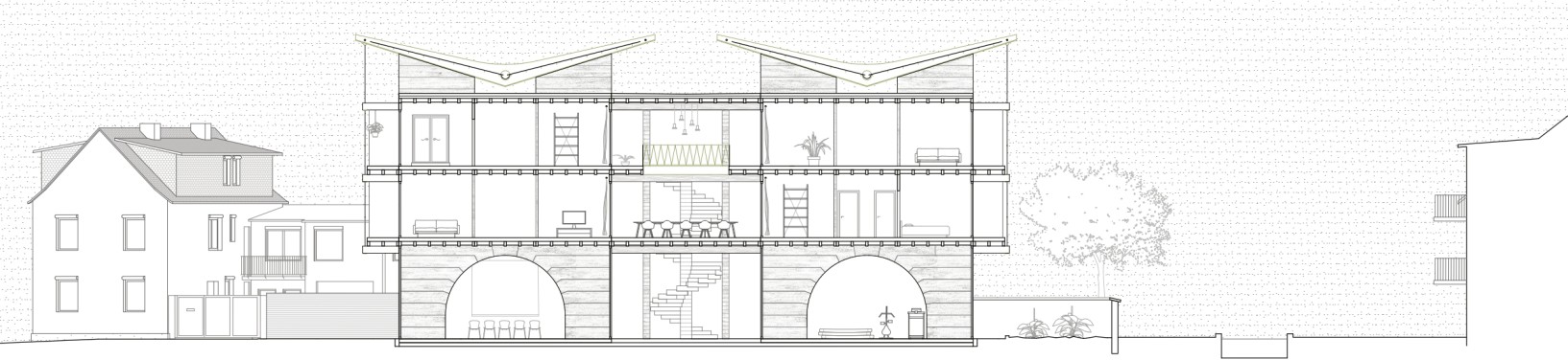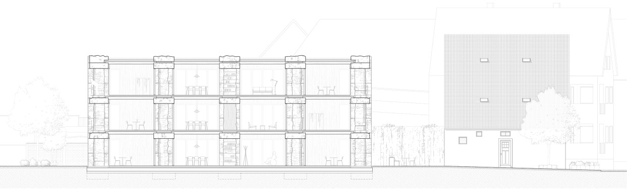 Natural stone has shaped architecture for centuries, before industrial materials transformed global building culture. Today, natural stone is once again gaining attention—not only for its design potential but also for its contribution to decarbonizing the construction sector. In Hallstadt, a contemporary residential building was designed that integrates harmoniously into its context through a load-bearing structure made of local stone. The project was developed in close collaboration with the Bamberg Natural Stone Works and the City of Hallstadt, and was part of an ideas competition. The building responds to the needs of the local Caritas organization: communal living, a multi-generational café, and a multifunctional space for the village community.